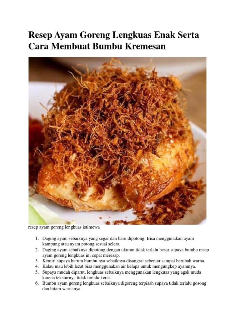 Resep Cara Membuat Ayam Goreng Lengkuas Info Resep
