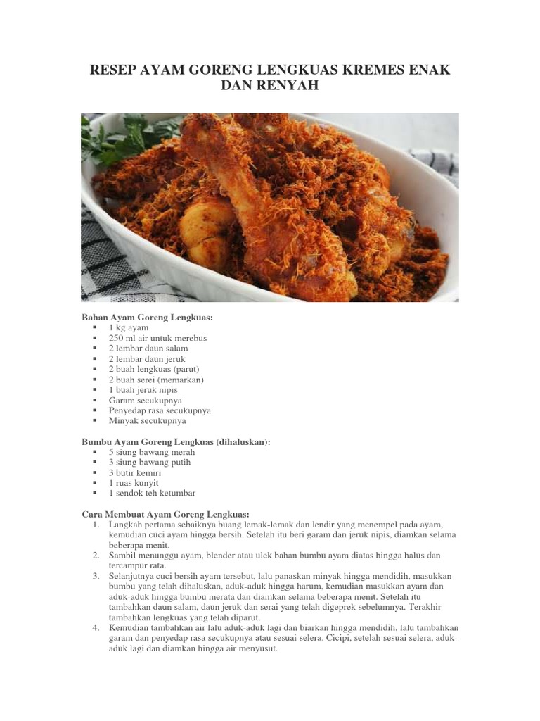 Ayam Goreng Lengkuas Kremes Enak Dan Renyah